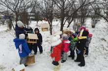 Балалар белән кошларыбызга җимлекләр урнаштырдык, җимнәр белән сыйладык.