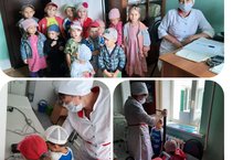 Балалар медпунктта фельдшер һөнәре белән таныштылар.Фельдшер Гасимуллина Гөлназ Фирәис кызы балаларны якты йөзе белән каршылады һәм узенең һөнәре белән таныштырды.Балалар врач һөнәренең бик кирәкле икәнен аңладылар.