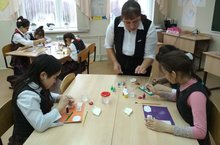 Сегодня учитель рисования с учащимися начальных классов