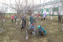 Барлык мәктәп хезмәткәрләре, укытучылар һәм укучылар катнашында өмә булды. Мәктәп территориясен чүп - чардан чистарттык,үләннәрне тырмаладык.
