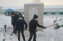 обелиск тирәләрен кардан чистартты.