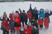 Чаналар тартып киттек без тауга. Таудан выжылдап шуып төшәбез. Нәкъ апа торган җиргә җитәбез. Бүген балалар тауга чана шуарга бардылар.
