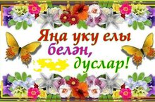 Яңа уку елы котлы булсын! 31.08.2016 Кеше гомере мәктәп юлы аша, Моңлы бер җыр кебек сузыла. Белем сукмакларын яра - яра Киләчәккә юлы сызыла. Кадерле укытучылар,укучылар,нәни дусларыбыз! Сезнең барыгызны да бүгенге гүзәл бәйрәм белән тәбриклибез! Яңа уку елында һәркемгә зур уңышлар, яңа ачыш - казанышлар, нык сәламәтлек телибез. Һәр дәрес укучыларга яңа белем - күнекмәләр, ә укытучыга иҗади омтылышлар китерсен иде. Яңа уку елы мөбарәк булсын!