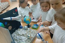 12 нче апрель-космонавтлар көне уңаеннан, балалар бакчасында, "Галэм кинлеклэре" тематик атналыгы үтә. Олылар торкемендэге балалар белән, "Кем ул космонавт?" темасына мөһим сөйләшү үткәрелде. Балалар беренче космонавт, космос, планеталар, космик корабльләр турында белделәр, кызыклы мәгълүматлар тупладылар. "Планеталар" жырын ойрэнделэр. Лото "Космос", домино, "Космо баланс" уеннарын уйнадылар. Блума кубигындагы сорауларга жавап эзлэделэр. Эвэлэу шогылендэ пластилиннан планеталар ясадылар.