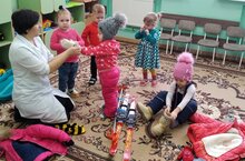 Кечкенәләр төркеме балалары белән кышкы киемнәр һәм кышкы уеннар турында сойләштек. Киенү тәртибен искә төшереп, исбатлап карадык.