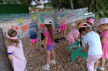 Бакчабызда балалар саф һавада рәсем сәнгате белән шөгыльләнделәр. Алар пленкага гуашь ярдәмендә төрле рәсемнәр ясадылар. Мондый ысул белән эшләү балаларга бик ошады.
