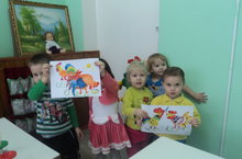 Кечкенәләр төркемендә рәсем шөгелендә "Кызыл әтәч" темасы. 28.01.2015