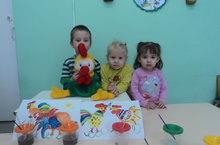 Балалар төрле төсләр кулланып кызыл әтәч ясадылар. Тәрбияченең максаты,балаларда персонаңга карата уңай мөнәсәбәт тәрбияләү, мөстәкыйльлек,бердәмлек сыйфатлары тәрбияләү.
