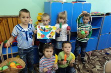 Кисеп ябыштыру шөгелендә балалар күмәк көч белән "Көз күчтәнәчләре" темасына яшелчәләр, җиләк-җимеш тутырылган ваза ясадылар.