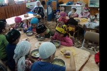 Корбан гаете уңаенан бакчабызга Маһинур абыстайны чакырдык.Ул балаларга вәгазҗ сөйләде, догалар укыды. Соңыннан балалар корбан итеннән пешкән аштан авыз иттеләр.