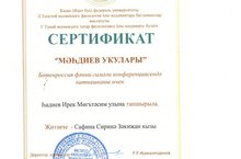 11 сыйныф укучысы Һадиев Ирек (укытучысы Сафина Сиринә Зәкиҗан кызы) Казан шәһәрендә үткән "Мәһдиев укулары" Бөтенроссия фәнни-гамәли конференциясендә катнашып, уңышлы чыгыш ясап кайтты.