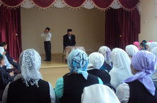 Кулларына чәчәк бәйләмнәре тоткан 10 нчы сыйныф укучылары, укытучыларны бәйрәмнәре белән котлап, каршы алдылар. Бәйрәмчә бизәлгән залда барлык сыйныф укучылары катнашында оештырылган концерт та укытучылар хөрмәтенә иде.