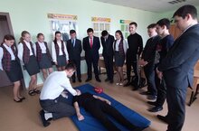 Призер регионального этапа Всероссийской олимпиады по ОБЖ Ханафиев Тимур демонстрировал оказание первой помощи: приемы остановки кровотечения, наложения шин, оказания помощи при утоплении, коме, вязку узлов на спасательной веревке.