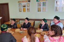 Каждый ученик представил одно блюдо. В конце классного часа все вместе пили чай, угощаясь вкусными татарскими блюдами.