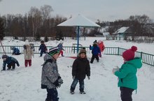 Балалар урамга чыгу белән кыш җитте, дип сөенештеләр.