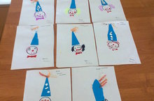 Балалар белән кисеп ябыштыру эшчәнлегендә клоун шләпәсен ясадык.