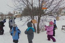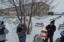 Чыршы, каен, миләш агачларына җимлекләрне элеп куйдык. Аларга көнбагыш, ипи валчыклары салып куйдык. Кошкайлар, килегез, рәхәтләнеп безнең сыйдан авыз итегез.