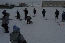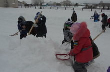 Кышкы озын яллар вакытында балалар үзләренең әтиләре белән бергә агач көрәкләр ясап килделәр.Һәзер көн саен саф һавага чыгып рәхәтләнеп кар көриләр. Бер яктан - сәламәтлеккә дәва булса, икенчедән хезмәт күнекмәләре дә алалар.