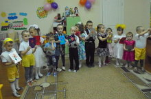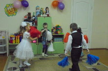Балалар үрдәк бәбкәләре биюен башкаралар.