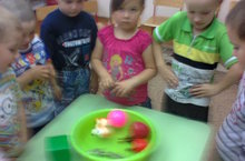 Рус теле эшчәнлеге вакытында балалар белән тәҗрибә үткәрдек. Балалар тәҗрибә ярдәмендә ни өчен пластмасс уенчыклар батмый, ә тимердән эшләнгәне бата икәнен белделәр. Пластмасс уенчыклар җиңел булу сәбәпле су өстендә йөзүләрен үз күзләре белән күрделәр. Тәҗрибә үткәргән вакытта балаларның күзәтүчәнлекләре, игътибарлыклары күзәтелде.