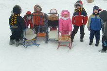 Балалар көннән-көн чаңгы шуу күнекмәләрен үзләштерергә омтылалар һәм ярышы-ярыша чаңгыда шуалар.