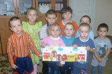 "Минем илем-минем өем" атналыгын йомгаклау итеп балалар белән күмәк эш кисеп ябыштыру эше башкардык. Балалар үзләренең өйләрен дуслары белән берлектә кәгазьгә ябыштырдылар. Бик матур композиция килеп чыкты.