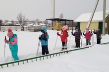 Саф һавда физкультура эшчәнлегендә чаңгыда шуарга өйрәнүебезне дәвам иттек. Чаңгы таякларын кулланганда сак булу кагыйдәләрен искә төшердек.