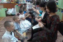 Әниләргә Абдулла Алишнең "Куян кызы" әкиятен сәхнәләштереп күрсәттек һәм кечкенәләр белән куян биюен биедек.