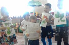 "Бу кайсы агачның яфрагы" дигән дидактик уен уйнадык. Хәтта кечкенә Азаматта безнең белән уйнады.