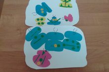 Кисеп ябыштыру эшчәнлегендә Г.Тукай абыйның "Бала һәм күбәләк " җырын искә алдык аңа таянып матур күбәләкләр ябыштырдык. Эшчәнлекнең максаты булып күләмле композиция корырга, күбәләкләргә карата соклану, сакчыл карыш уяту хисе, симметрияле формалар ясарга күнектерү.