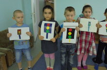 Юлда йөрергә өйрәнәбез.Балалар белән "светофор" кисеп ябыштырдык. 13.01.2015