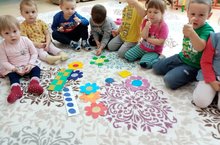 геометрик фигураларны (түгәрәк, өчпочмак, квадрат, турыпочмаклык) һәм төп төсләрне таный белүне ныгыту; уң һәм сул кулны аера белергә һәм 5 кә кадәр дөрес санарга күнектерү; ничәнче дигән сорауга дөрес җавап бирергә өйрәтү; кул чуклары белән капшап зур һәм кечкенә предметларны (ташларны борчактан) аерырга күнектерү;