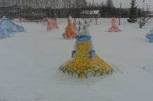 Безнең балалар бакчасы коллективы кардан рус халыкының “Зайкина избушка” әкияте буенча кар сыннары әвәләделәр. Төлке, Куян, Әтәч әкиятнең төп геройлары булса, алар янындагы өйләре, ярдәмгә килгән җәнлекләре дә матур килеп чыкты. Безне ике-өч төркемлек балалар бакчалары арасында өченче урын белән тәбрикләделәр.Безнең коллективка алдагы елларда да уңышлар юлдаш булсын!