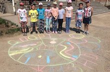 "Дуслык" лагерында бүген 8нче көн. Иртәнеге аштан соң ГТОга багышланган рәсем конкурсы оештырылды. Һәр отряд мәктәп каршындагы асфальтка спорт темасына рәсемнәр ясады. "Кояшкай" отряды футбол уйнаучы малай, ә икенче отряд бөтен төр спорт уеннарын чагылдырган рәсем ясадылар.