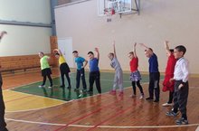 Спорт комитеты җитәкчесе Мөхетдинов Рәмзил 2-3 нче сыйныф укучылары белән берлектә физкультминутка үткәрде.