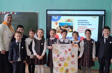 Но самое интересное ждало впереди! Маленькие «орлята» сами почувствовали себя настоящими мастерами. Вооружившись кистями и красками, они с энтузиазмом принялись расписывать узоры, украшая ими символическую «скатерть-самобранку». Каждый штрих, каждый лепесток и ягодка – всё это было наполнено детской фантазией и любовью к родному краю. -