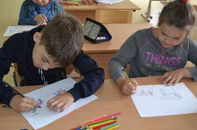Несмотря на пасмурные дни, жизнь в лагере кипит. После бодрой зарядки и вкусного завтрака ребята занимались по секциям: угадывали мелодии и голоса персонажей из различных мультфильмов, занимались чистописанием, а на психологическом тренинге рисовали и рассказывали про несуществующее животное.