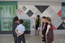 В рамках Декады гуманитарных наук, учитель истории и обществознания Гумерова Раушания Рифмировна провела экскурсию для 5 классов "История татарской письменности". Наши школьные стены несут информацию об истории родной письменной культуры , и во внеурочное время учащиеся могут получить много интересных фактов, просто рассматривая мозаичную стену, включенную в оформление школьного интерьера.