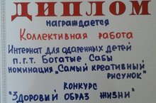 МБОУ «СОШ-интернат для одаренных детей» Сабинского муниципального района РТ награждена Дипломом Управления Роспотребнадзора по РТ за коллективную работу «Самый креативный рисунок» в конкурсе «Здоровый образ жизни».