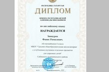 Зиннуров Фанис- призер заключительного этапа республиканской олимпиады школьников по английскому языку 05.02.2017