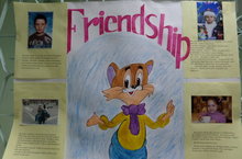 В рамках кружка «Занимательный английский» ученики 5 го класса выпустили стенгазету «Friendship”. В газете были опубликованы рассказы о себе, о своих близких и родных на английском языке. Каждый ученик с интересом принимал участие в выпуске газеты «Friendship”. Можно было увидеть детские фотографии учеников 5 го класса. Символом дружбы они нарисовали мультипликационного героя Кота-Леопольда.