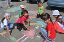 Началась вторая неделя в лагере «Детство». Эта неделя посвящается теме «Математика – царица наук». Сегодня мы провели конкурс рисунков на асфальте «Рисуем из геометрических фигур». Все дети приняли активное участие в конкурсе.