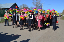 Коллектив школы выступил (в полном составе) на праздничном параде: у всех на руках были красивые цветочки, сделанные своими руками и разноцветные шары.