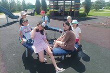 Незаметно прошёл ещё один день нашего пришкольного лагеря. После сытного и полезного завтрака ребята сходили на стадион " Олимп ". На стадионе ребята играли в спортивные игры, гоняли мяч, кто-то занимался на тренажёрах, а кто-то катался на каруселях и качелях. Каждый смог найти занятие по душе.