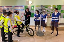Ученикам также напомнили про безопасную езду на велосипеде, указав на необходимости навевать шлем, наколенники и налокотники. И в специально оборудованном кабинете ребята смогли проехать на велосипеде путь, учитывая остановку на светофоре, дорожные знаки, езду по пешеходному переходу. -