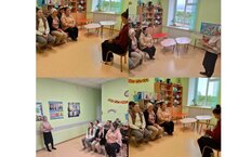 Бүген бездә балалар китапханәче Гөлинә апалары белән берлектә шигърият, әкиятләр иленә сәяхәт ясадылар.