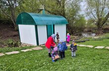 Балалар тәрбияче белән бергә чишмә территориясен чистарттылар. Иске яфракларны һәм ботакларны җыештырдылар . Чишмә тирәсендәге тирәлек күпкә чистарак һәм матурырак булып калды. Мондый җыештыруда катнашу табигатькә аңлы мөнәсәбәт формалаштыруга ярдәм итә. -