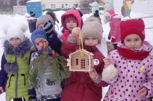 Бүген мәктәпкә әзерлек төркеме балалары, әти-әниләре ярдәме белән ясап алып килгән, җимлекләрне тәрбияче апалары Саматова Ләйлә Исмагиловна белән бергә элделәр. Балалар бик кызыксынып, кошларның, җимлеккә килеп, ашаганнарын күзәттеләр. Бу төр чаралар балаларда кошларга, барлык тереклеккә миһербанлык, шәфкәтьлелек, ярату хисе тәрбияли.