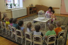 Тутый кошлар бездә кунакта 08.11.2017 Нәниләр төркеме балаларын Ләйсән Хаҗиевна танып белү эшчәнлеге барышында тутый кошлар белән таныштырды. Аларның кечкенә, каурыйлары төрле төстә булуына игътибар итеп, гәүдә өлешләрен кабатладылар. Кошларны кайгыртып, даими карап, ашарларына җим, су салырга кирәклеген искәрттеләр.
