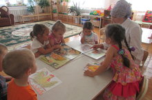 Тәрбияче Фатихова Гүзәл Хәмзевна балалар белән берлектә "Кызыл әтәч" темасына, плакатлар, рәсемнәр ярдәмендә әңгәмә үткәрде, С.Я.Маршакның "Песи өйе" әсәре белән таныштырды.